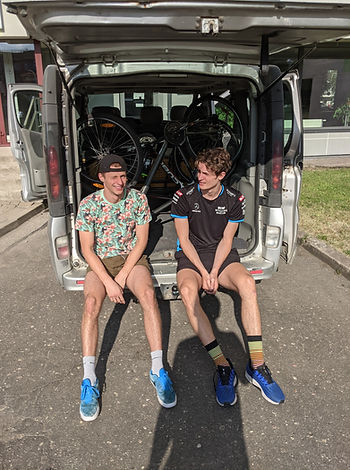 (Diena pirms, riteņi jau sakrauti mašīnā, tikai jābrauc uz starta pozīciju)