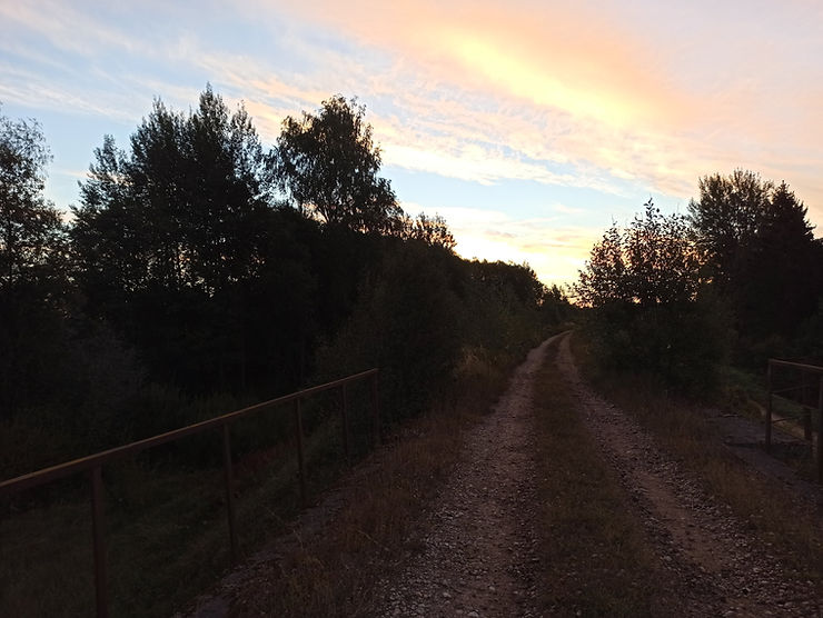 Zaļā dzelzceļa trase sākas vien pāris metrus no vēl esošās dzelzceļa līnijas, tikai mana trase mani vedīs uz Gulbeni, kamēr esošais nogriežas uz Valmieras pusi. Debesis viegli iekrāsotas violetā krāsā, un saule aust tieši manam ceļam pretim, centīsimies nesaskrieties. Pirmajās minūtēs vēl mazliet tumsa un acis mazliet vēl līp ciet, bet ilgi tas nav, dzestrais rīts (tiešām dzestrs, tuvu mīnus grādiem ja ne paši mīnusi) un putnu čalas liek manam prātam arī mosties, ķermenim netiek dota balss, tas strādā, jo zina, jo ātrāk sāksim, jo ātrāk beigsim (cik naivi).
