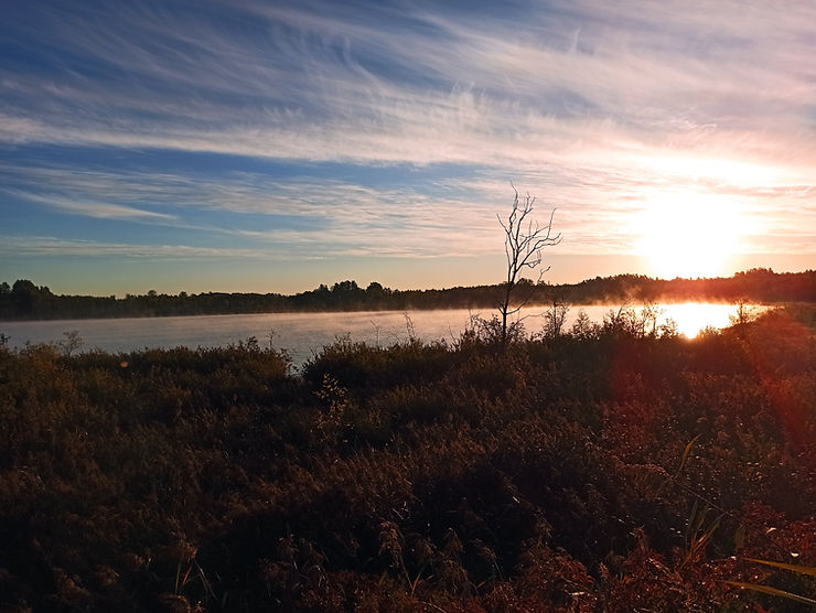 Kad tumsa jau apvārsni pametusi, pavērās plašs jo plašs lauks, kur tālumā govis ganās un zaļā zāle liekas nedabiski spilgta, tālumā vēl viena lapsa šķērso manu ceļu, un šoseja, kur mašīnas jau pamodušās lido uz Cēsīm un Madonu, bet tieši priekš manis tā pārcelta pāri un es ar saviem vagoniem netraucēti kursēju tālāk. Aiz tilta saule silda vietējo ezeriņu, virs kura ceļas viegla migla, kas tinās starp koku zariem arī līdz manai trasei, kuru tad es brāzdamies cauri izkliedēju.