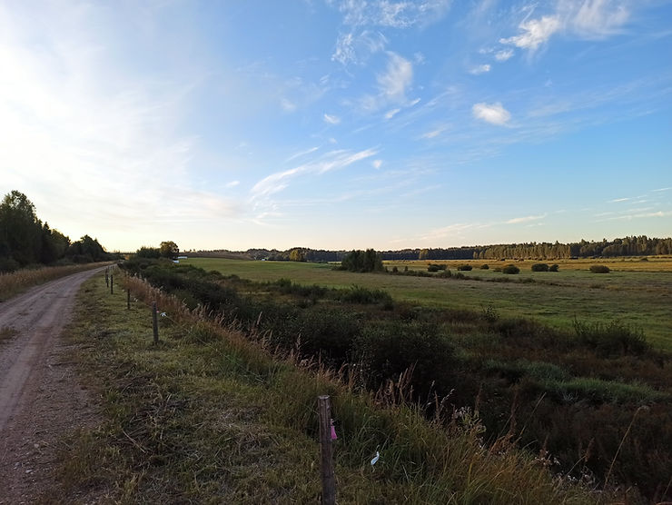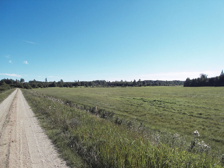 Manu trasi arī ir iecīnījušas stirnas, kas mazliet apjukušas, mani ieraugot, brīdi pastāv ceļa maliņā, pirms graciozi ielec krūmos, tāpat vairākas lapsas mani nopēta pirms pazūd starp tiem pašiem krūmiem. Ar asfaltu šo ceļu nevar salīdzināt, tik ātri neies, bet lai gan grants, tīri braucama arī ar manām, nosacīti, šaurajām riteņa riepām, neskaitot pāris momentus, jutos tīri ērti, apkārt mani pavada kārklu puduri, kas iekarojuši grāvmalas, šķērsoju pāris ciemus un pāris upītes, kurām lielāki un mazāki tilti ceļas pāri, kā arī paveras skati uz pļavām un labības laukiem, kas paver skatu mazliet tālāk un ļauj zilās debesis maz vai ieelpot.