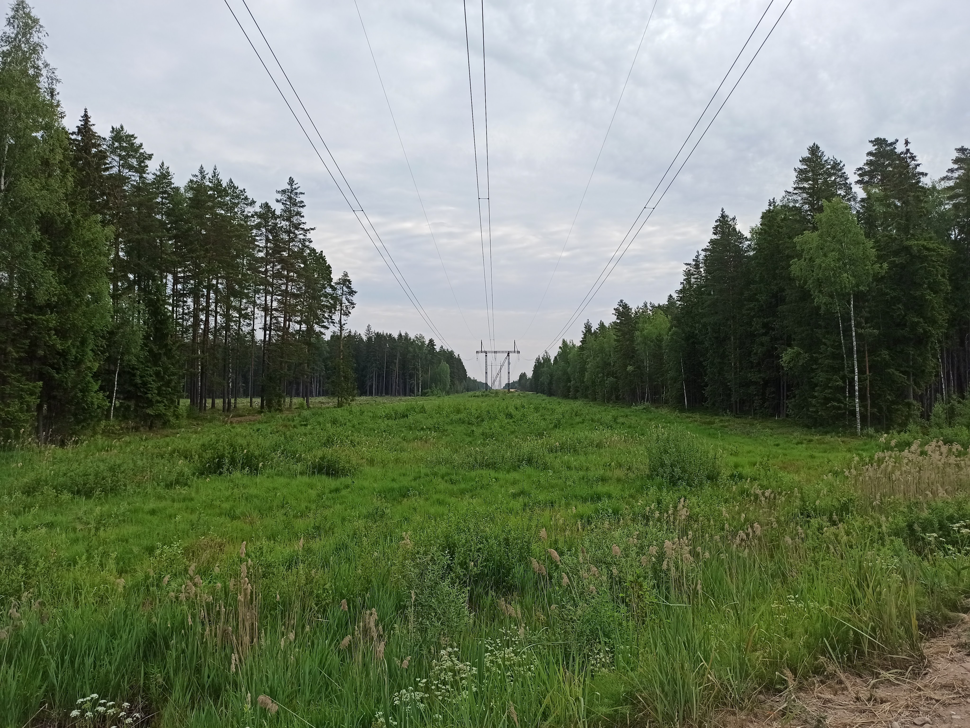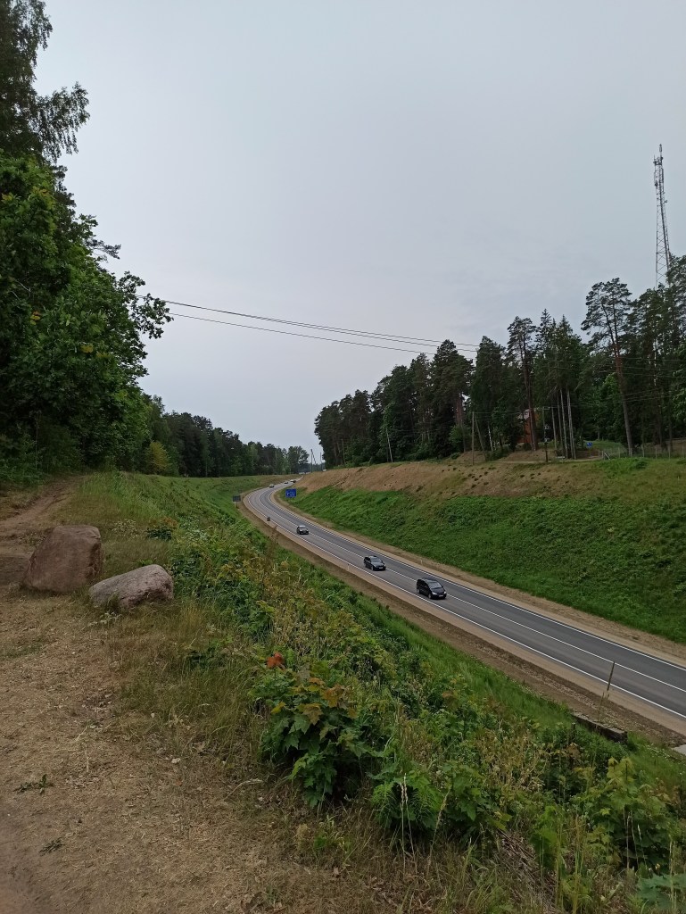 Tam es biju gatavs, pedāļi somā un darbarīki pie rokas. Bet lai ar kādu spēku es censtos, uz priekšu man neiet (ziņa no nākotnes – arī džeki servisā nevarēja dabūt nost veco pedāli). Uz brīdi nodomāju griezties riņķī, jo knapi pirmos 20km esmu nobraucis, bet uzkāpis virsū saprotu, ka nav arī tik traki (bija, bet ko nu vairs). Tā, īsti neko neizmainījis, turpinu savu ceļu. Taisns un reibinošs grants ceļš ved tik uz priekšu, te kalniņš, te leja. Dažbrīd paspīd plašāks skats uz augstsprieguma līnijām, ko ieskauj egļu rindas.