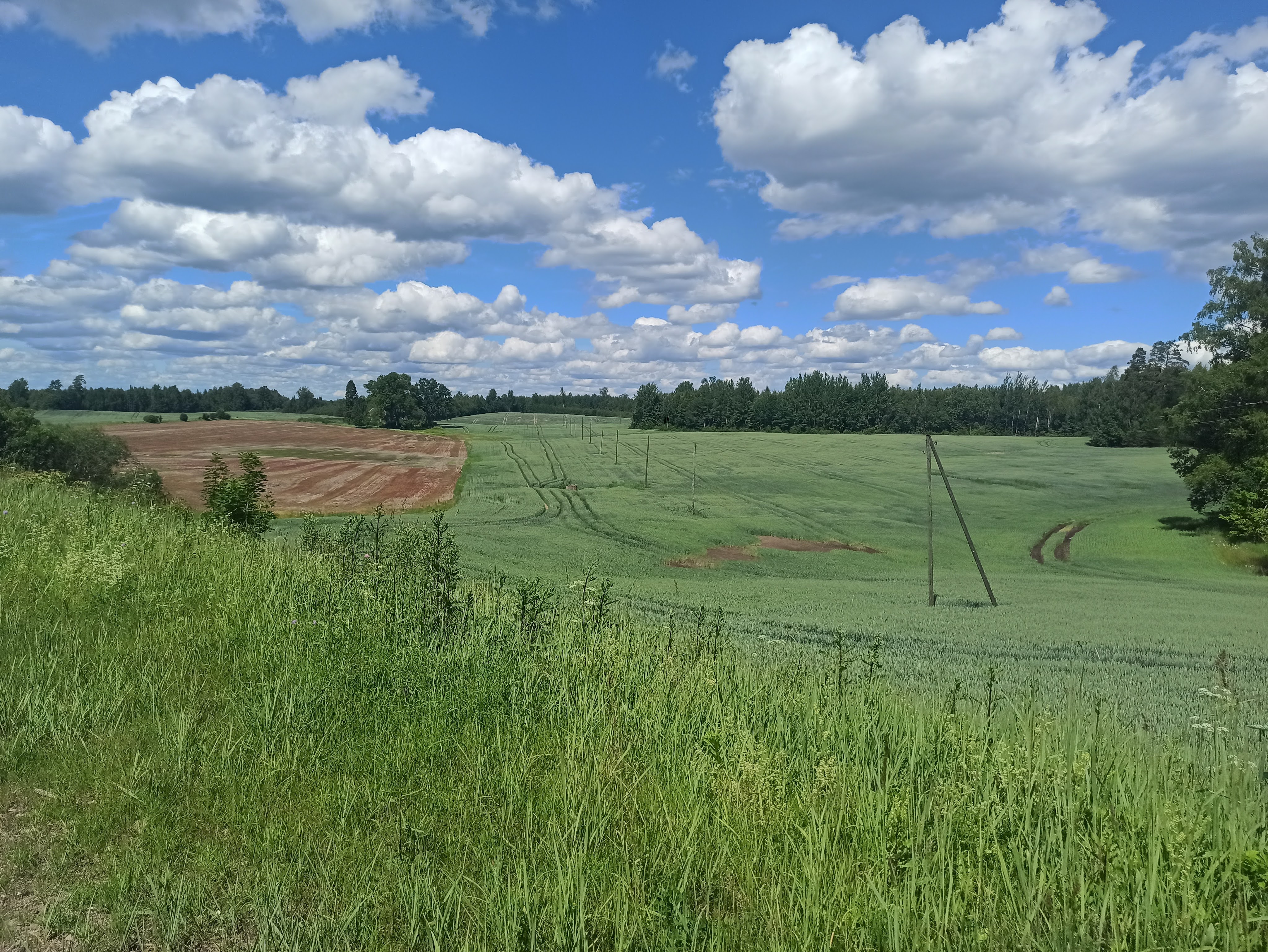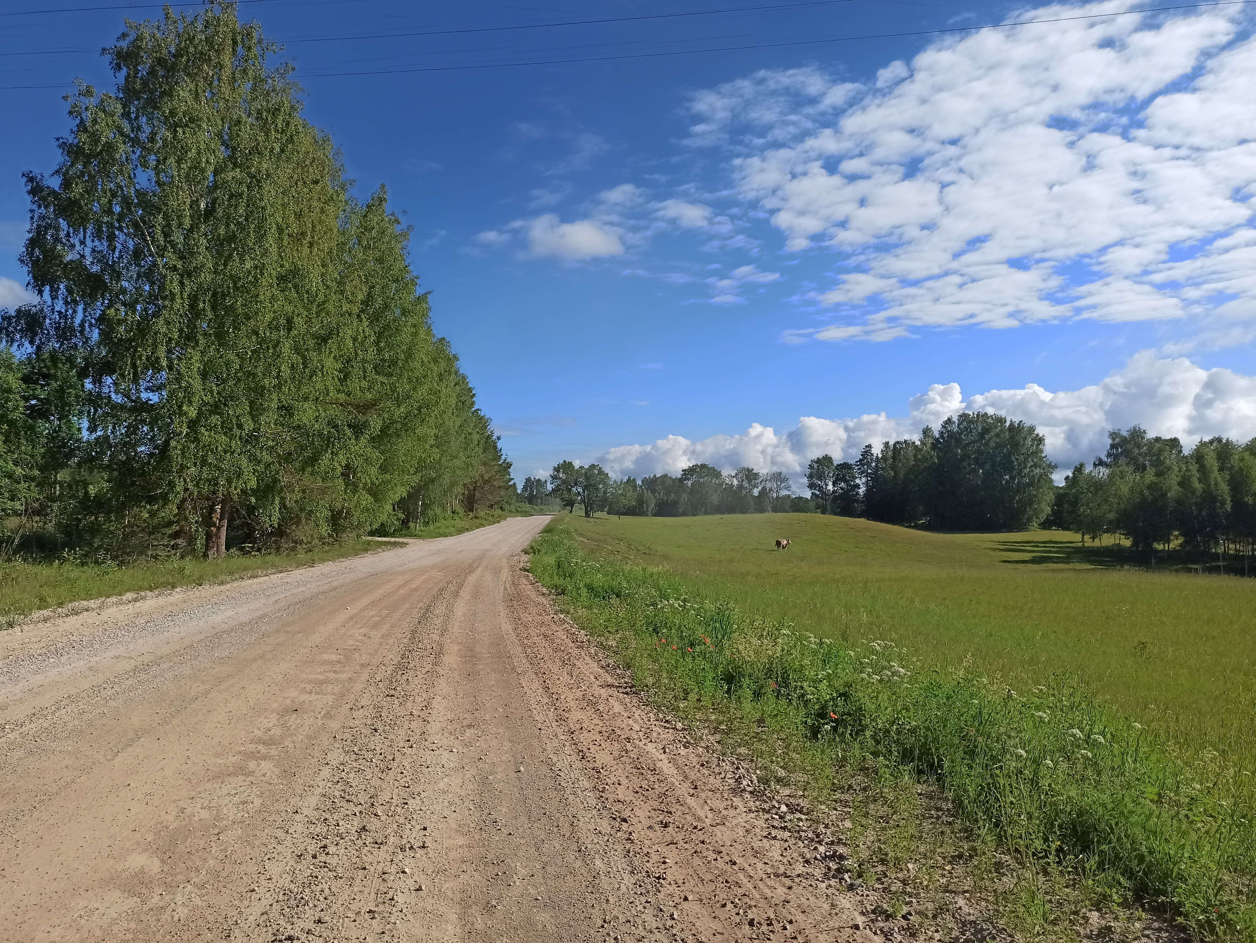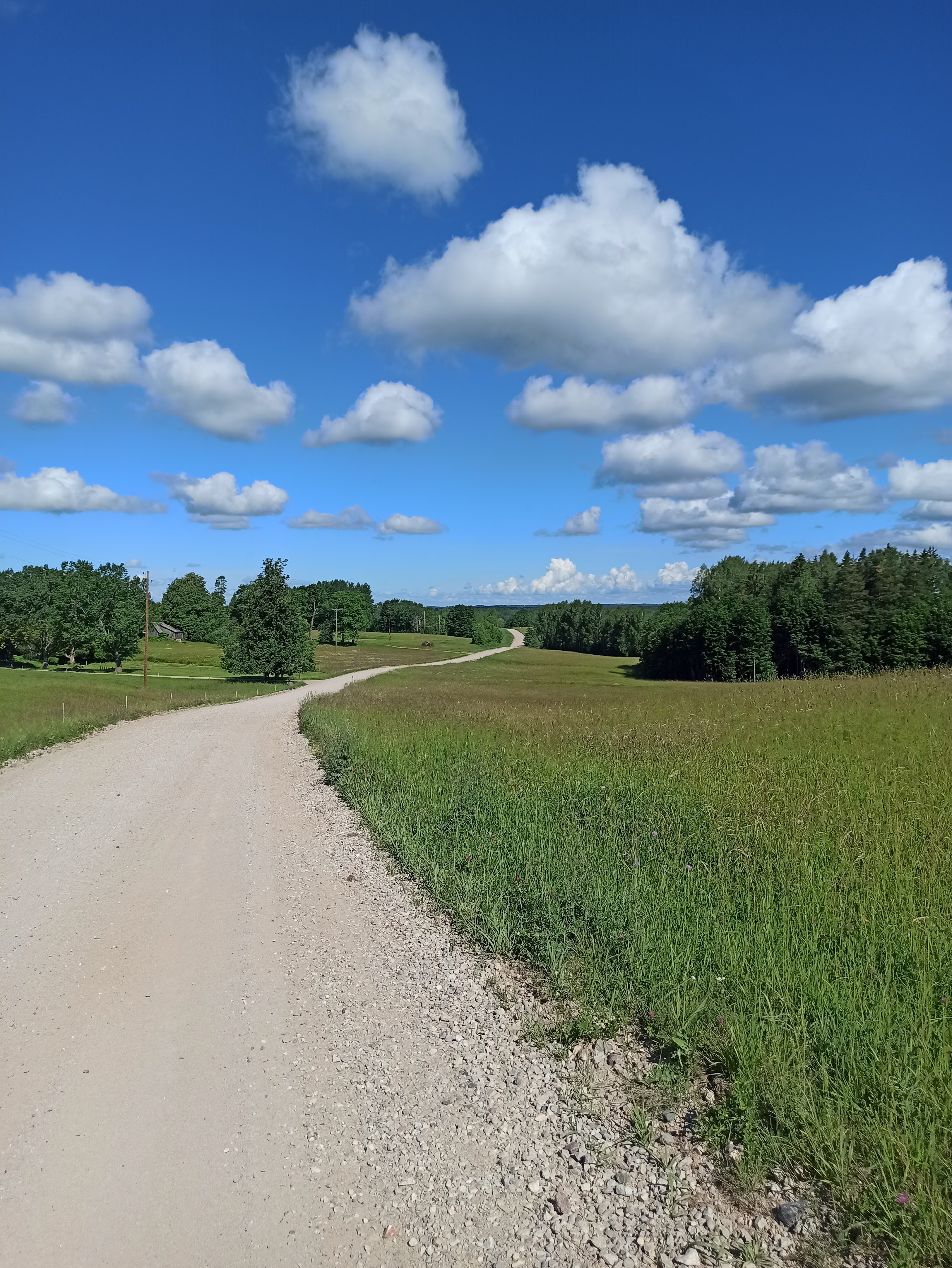 Šeit valda kārtīgs plašums un pa retai viensētai, un pagaidām par grants ceļu nevaru sūdzēties. Gana drīz arī iemēģinu igauņu asfaltu, liekas procentuālais kalniņu koeficients tikai kāpjas. Pārāk sveši gan nejūtos, priežu rindas, savvaļas ziedi ceļa malās un labības lauki neliek sajust robežas šķērsošanu.