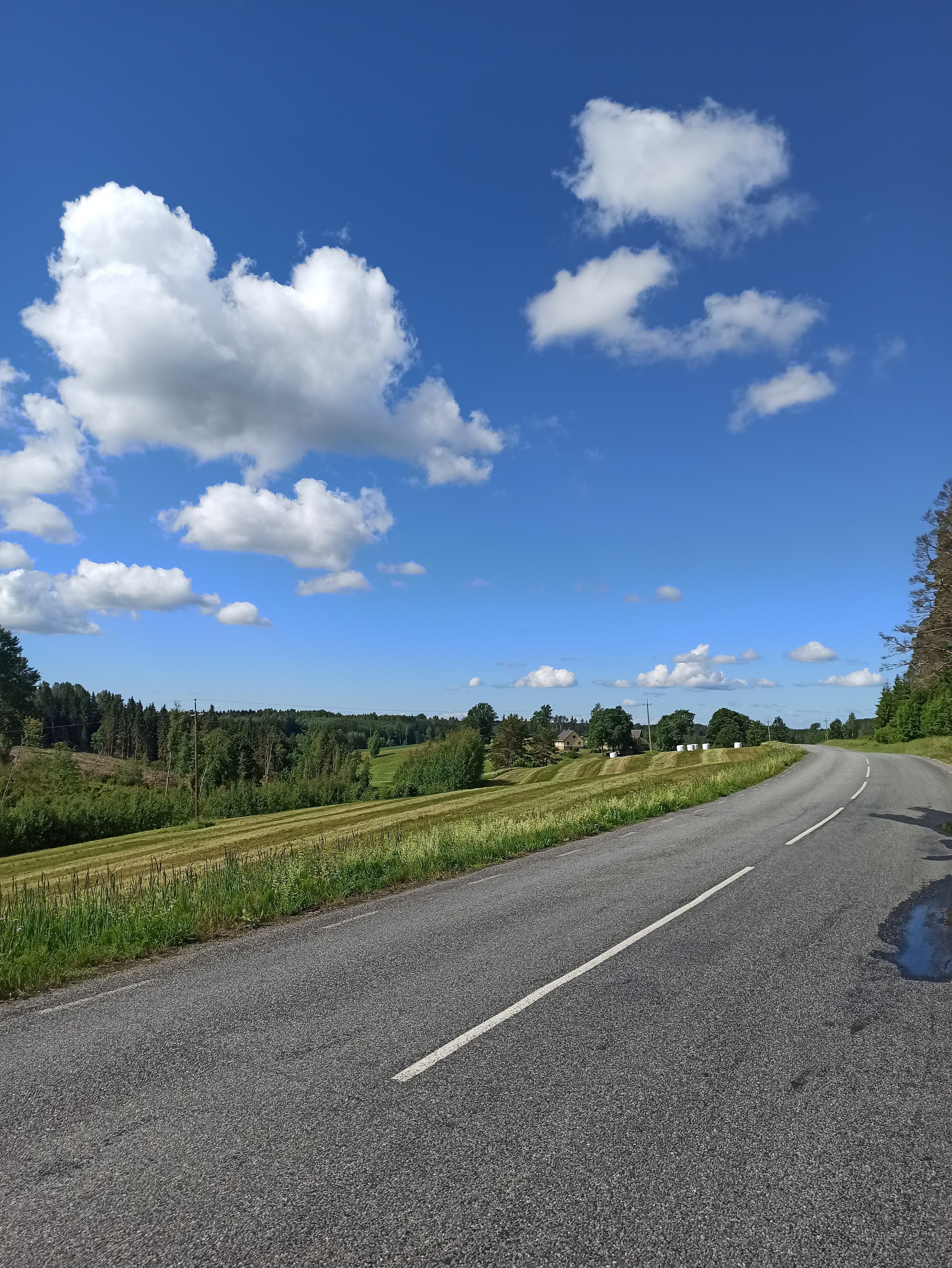 Tad ar žvunku iebraucu līkumā un tieku uz sakārtota ceļa, vietējās sētas igauņi pļaujot zāli tik uz mani noskatās un ko iesmej, ceru ka tikai to labāko.